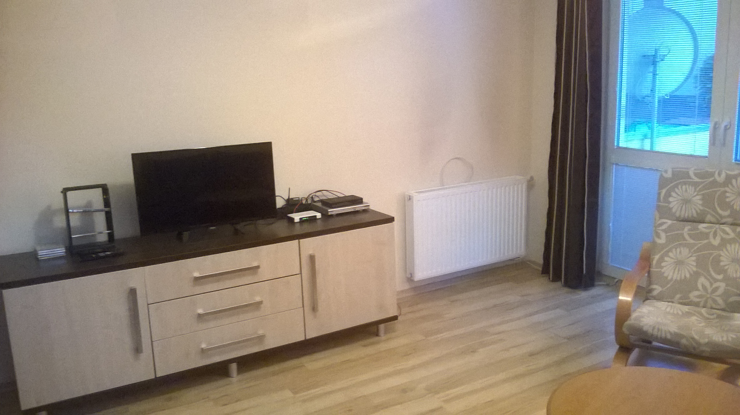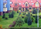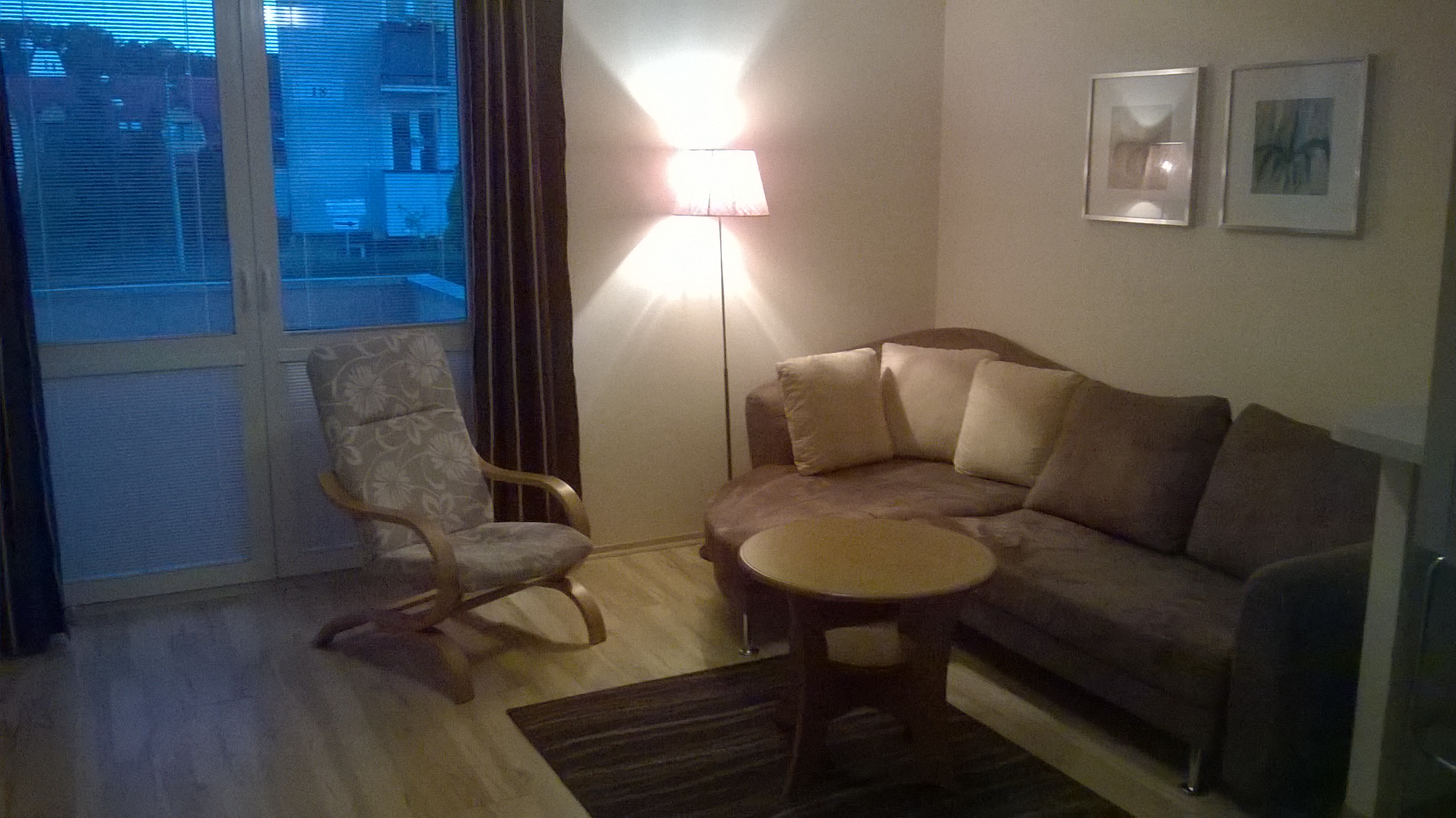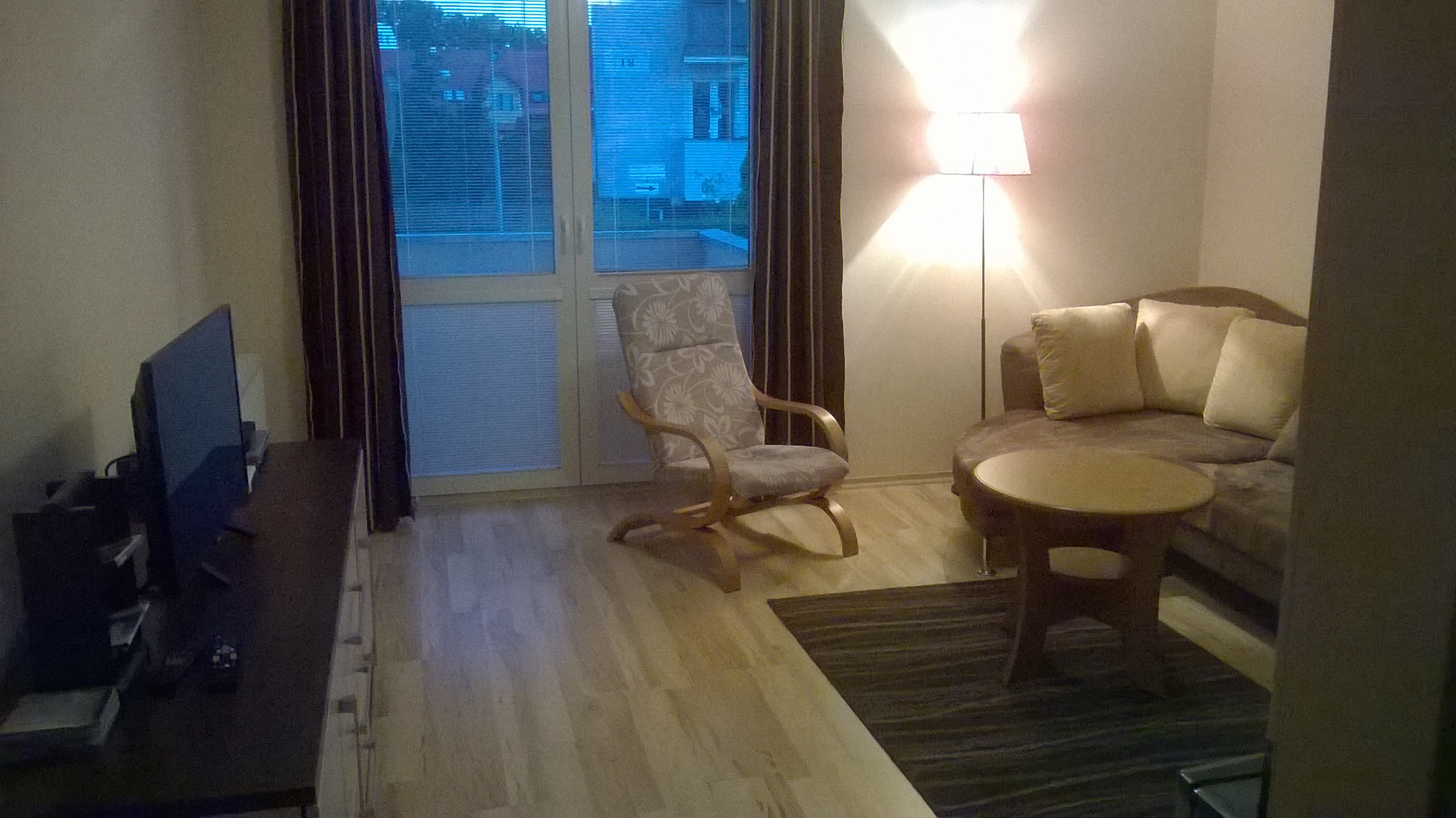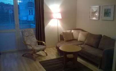 Bardzo ładny dwupokojowy apartament położony jest na parterze w czteropiętrowym budynku. W otoczeniu budynku znajduje się kilka podobnych obiektów oraz osiedle domków jednorodzinnych. Teren jest ogrodzony co sprawia, że czujemy się tu bezpiecznie.