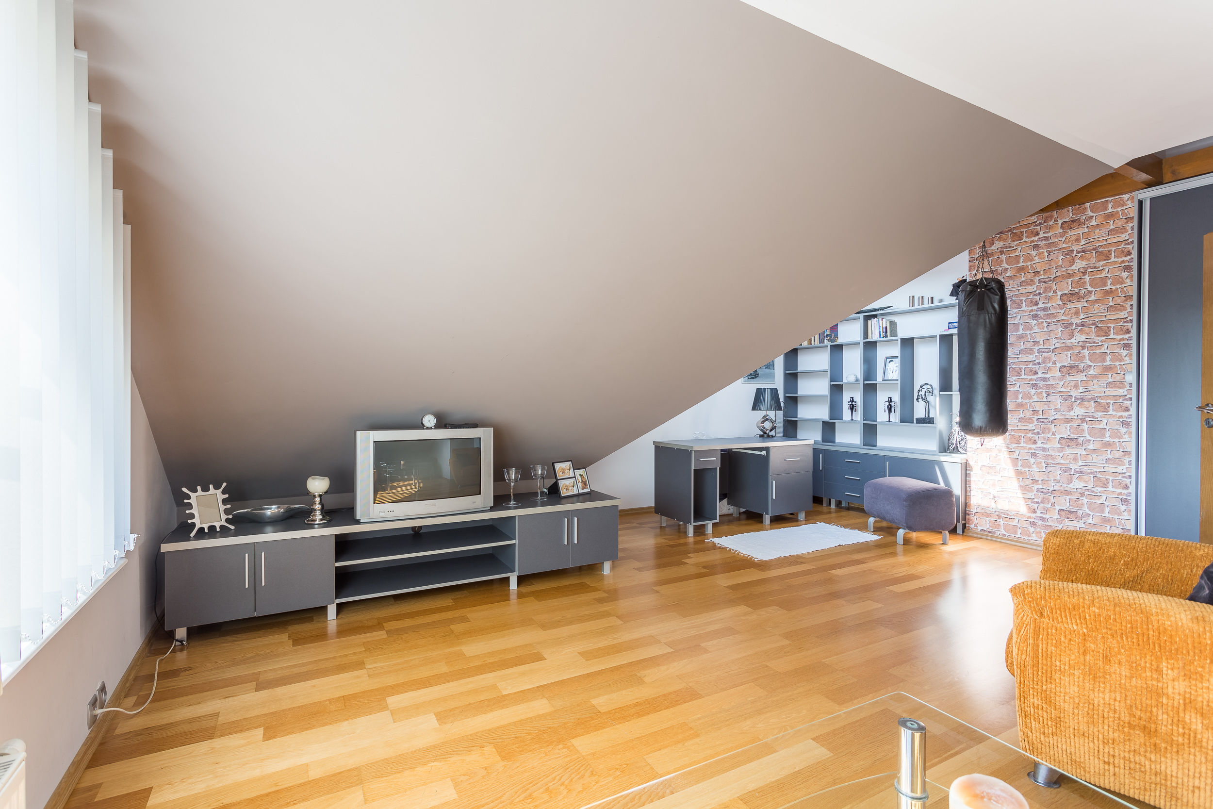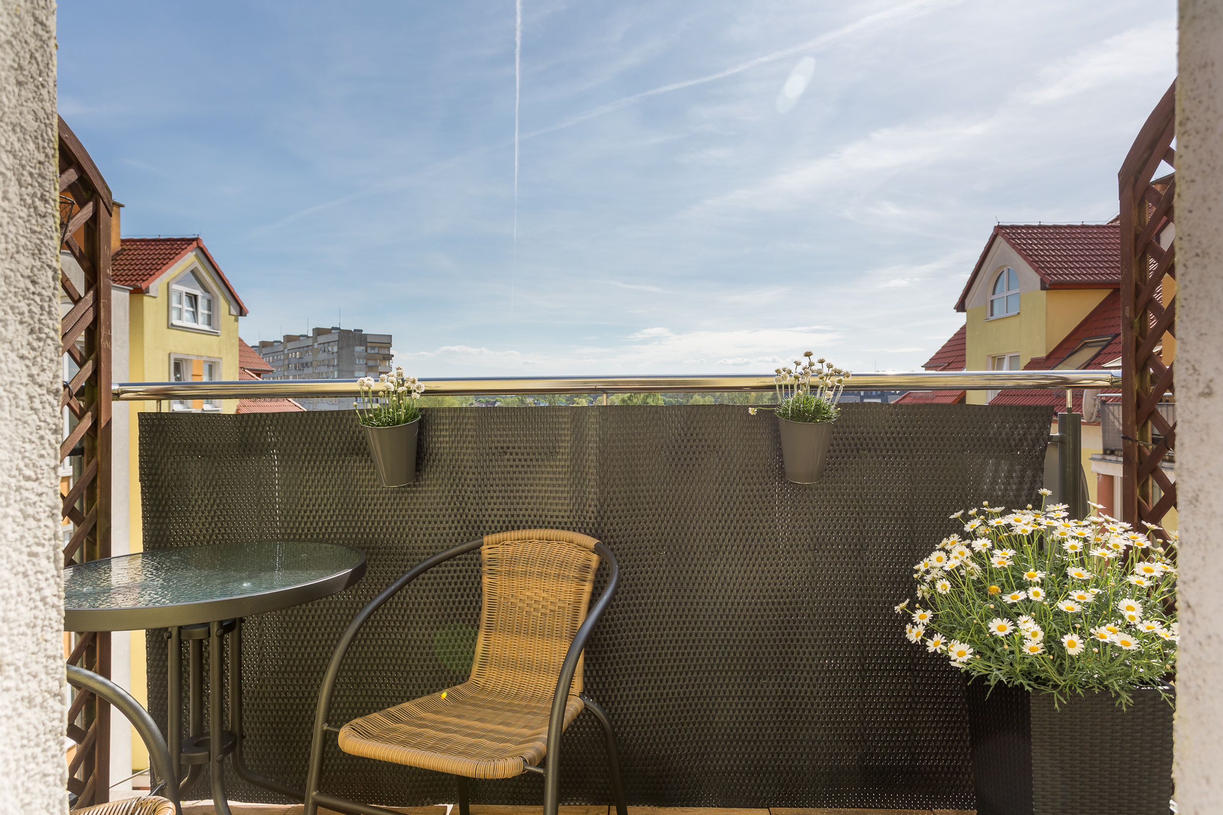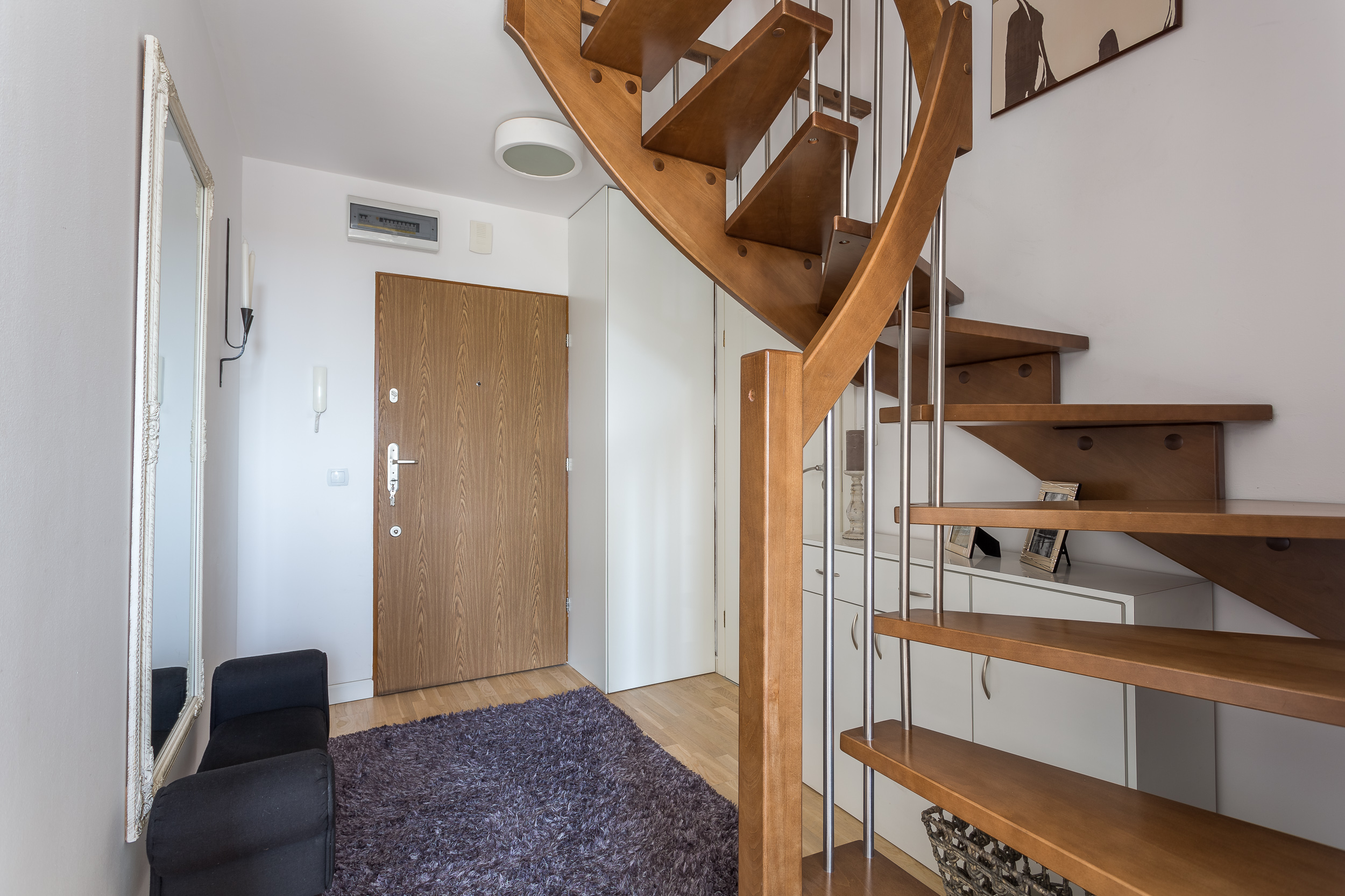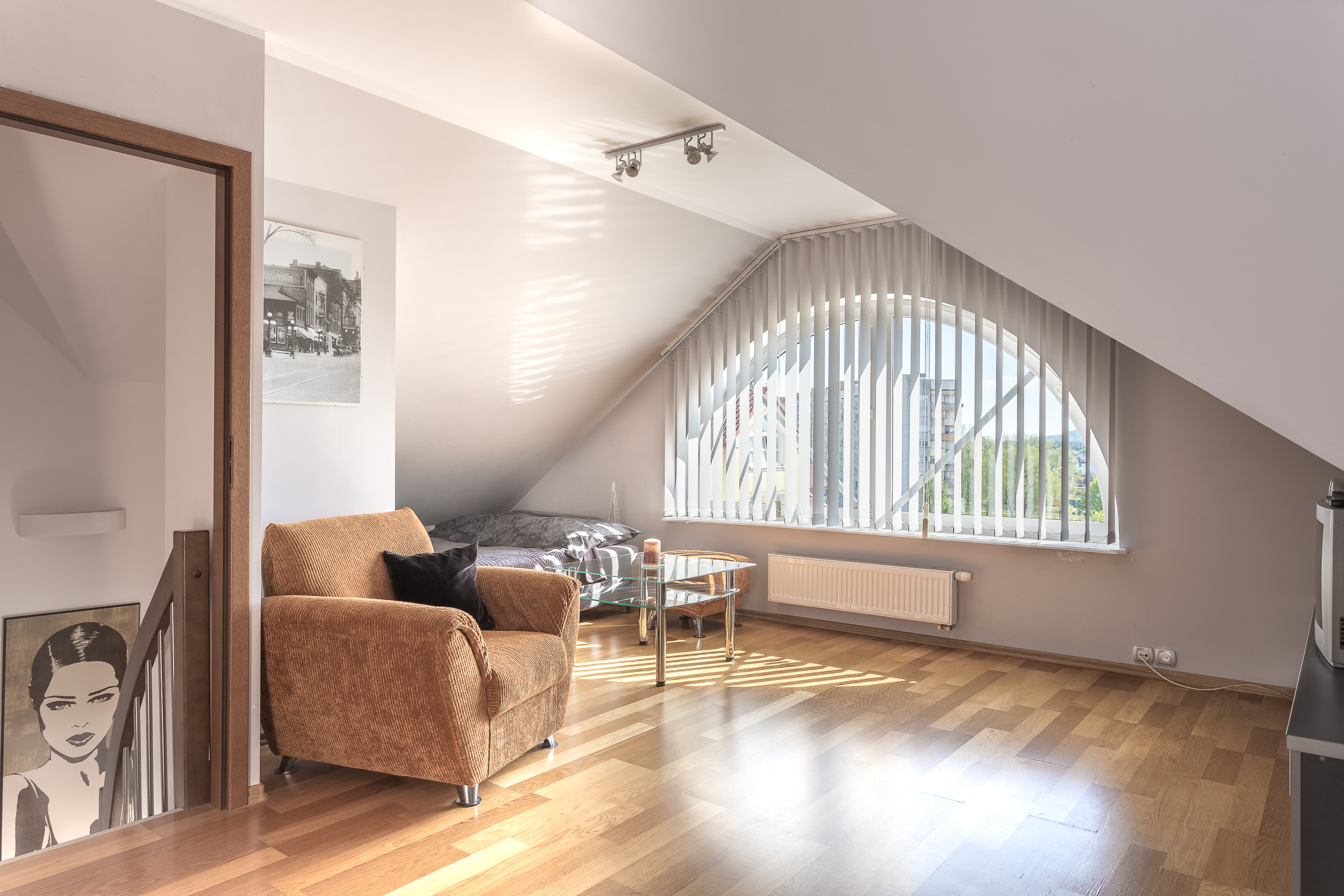 Ładnie oraz nowocześnie urządzony dwupoziomowy apartament, składający się z  trzech pokoi oraz dwóch łazienek po jednej na każdym poziomie. Położony jest on na IV piętrze w  czteropiętrowym budynku z windą. W pobliżu znajdują się sklepy oraz przystanek niemieckiej kolejki „UBB”