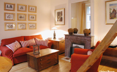 Mieszkanie składa się z pokoju dziennego z antresolą, kuchni, sypialni oraz łazienki. W pokoju dziennym mamy na wyposażeniu stół z krzesłami, sofę z funkcją spania dla 1 osoby, stojącym przy niej stolikiem, fotel, granitowy kominek, Odbiornik TV, telefon i internet.