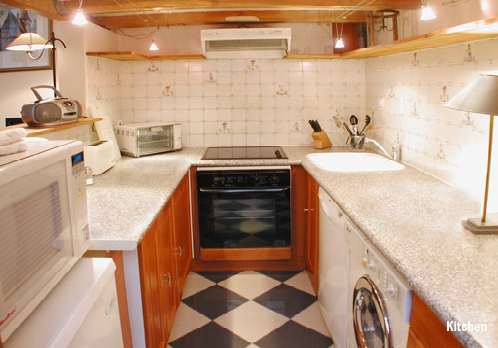 Kuchnia jest w pełni wyposażona. W skład jej wchodzą: toster, ekspres do kawy, czajnik elektryczny, kuchnia elektryczna wraz z piekarnikiem, kuchenka mikrofalowa, pralko-suszarka, lodówka, zmywarka, sztućce oraz naczynia.